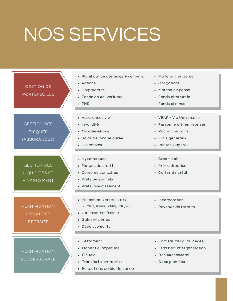 la retraite ou planification de votre succession – nous mettons